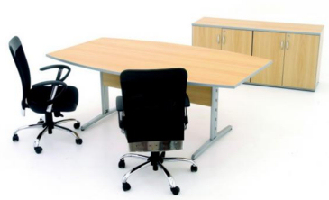 Mesa de reunião semi oval - Linha Smart + armário credence 04 portas - várias cores e medidas