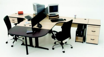 Módulo delta c/ Divisória e meia-lua - Linha Smart + gaveteiro junção p/ pasta + gaveteiro fixo + Sup CPU - várias medidas e cores