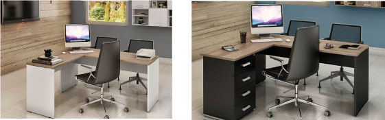 Mesa atendimento gerencial com complemento em L – Gavetas opcionais –várias cores