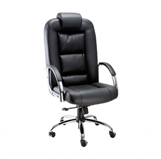 OF Florença 10 B – Poltrona Presidente com braços e base cromados – regulagem sincronizada de ângulo de encosto – super macia – revestida em P.U. Cores: Bege, Marrom e Preto